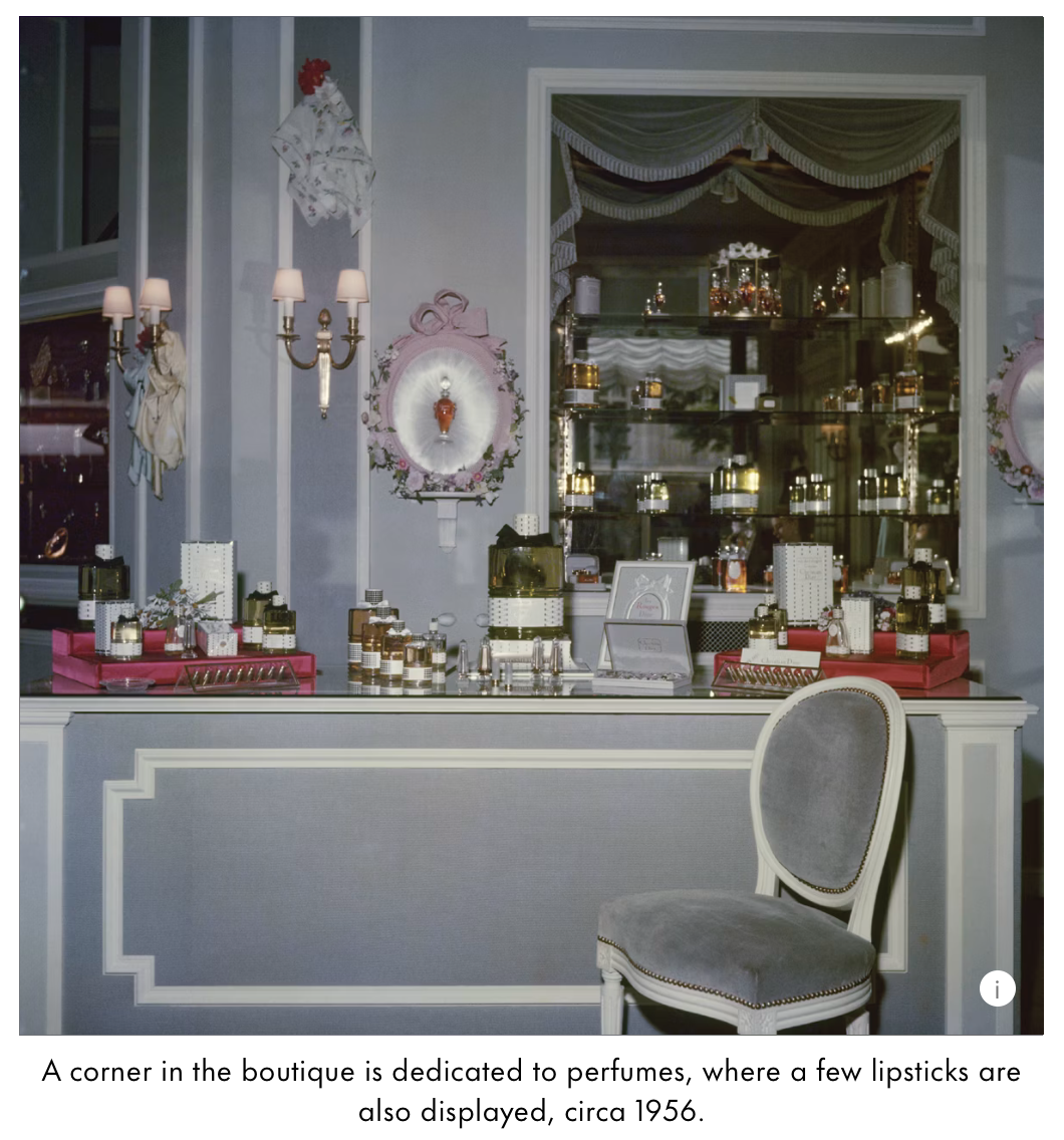 Some of the first Dior cosmetic products, perfumes, leaning into a classic Paris influence.
