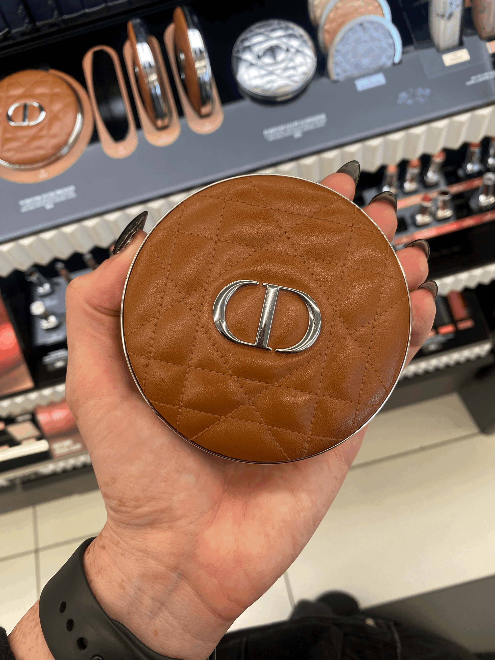 Another recognizable, though inconsistent Dior brand code is the quilted compact. In my opinion YSL does this better and the design is more natural in their merchandising. The quilted compacts are cute and meant to read as luxury but, compared to the YSL quilted compact these feel cheap. YSL version feature sophisticated colors, real fabric, stitching details, actual quilting. Where as the Dior versions are completely hard plastic.